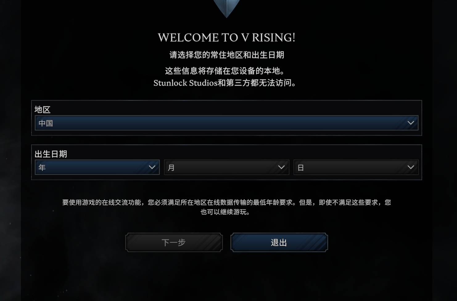 首次进入游戏这里选择中国(china)就是中文了