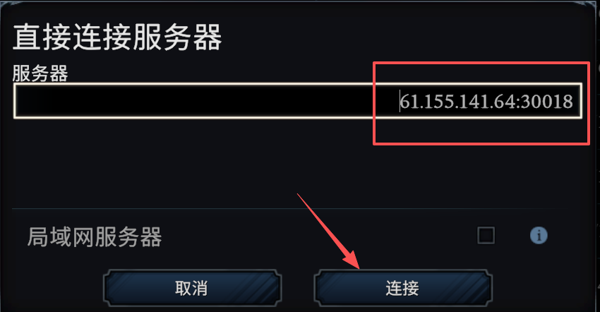 复制面板上的游戏地址,粘贴到游戏里面,点连接进入游戏