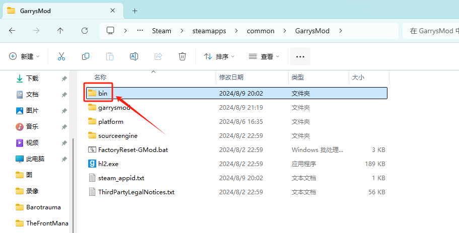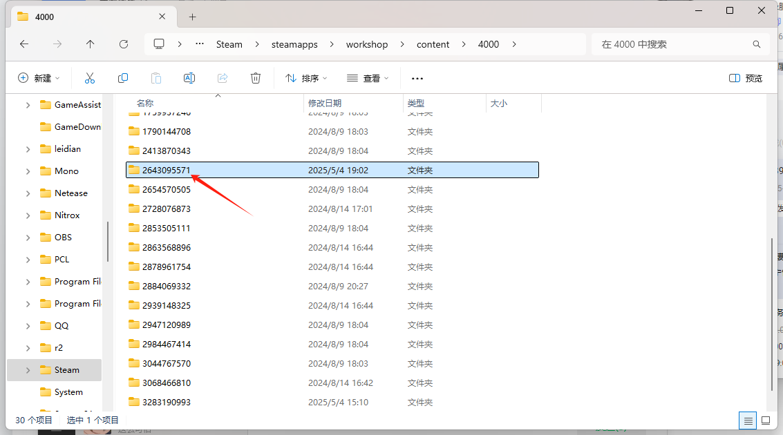 在steamapps文件夹里根据以下路径打开4000(盖瑞模组的游戏ID)文件夹