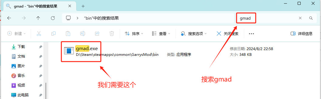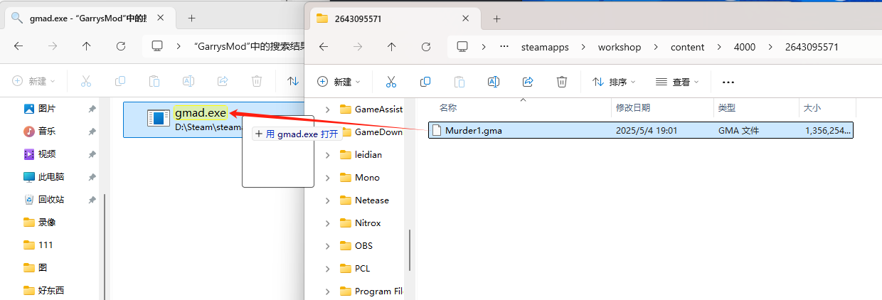 接着就将创意工坊模式文件拖过去gmad.exe文件身上进行解包