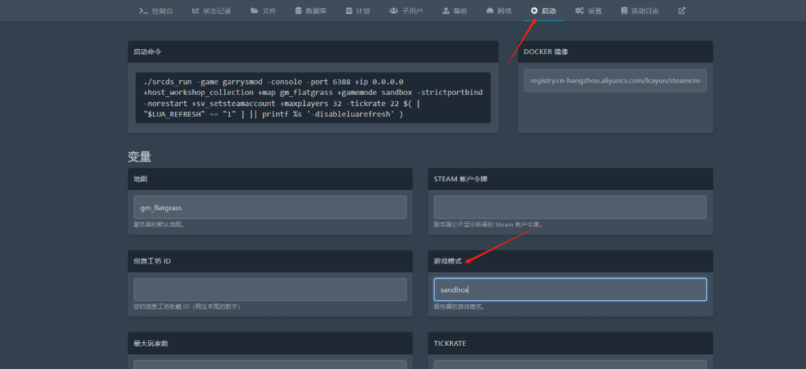 解压完成后去到启动页面,找到游戏模式,然后将你想要的游戏模式修改上去即可
